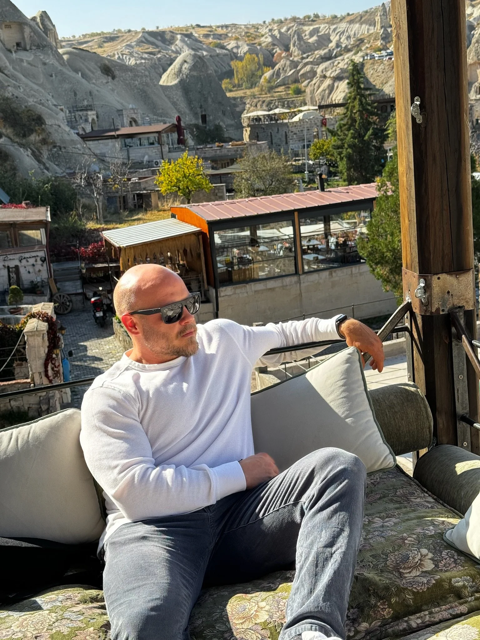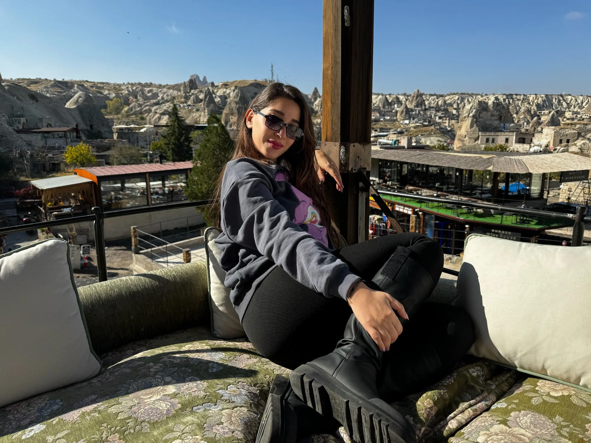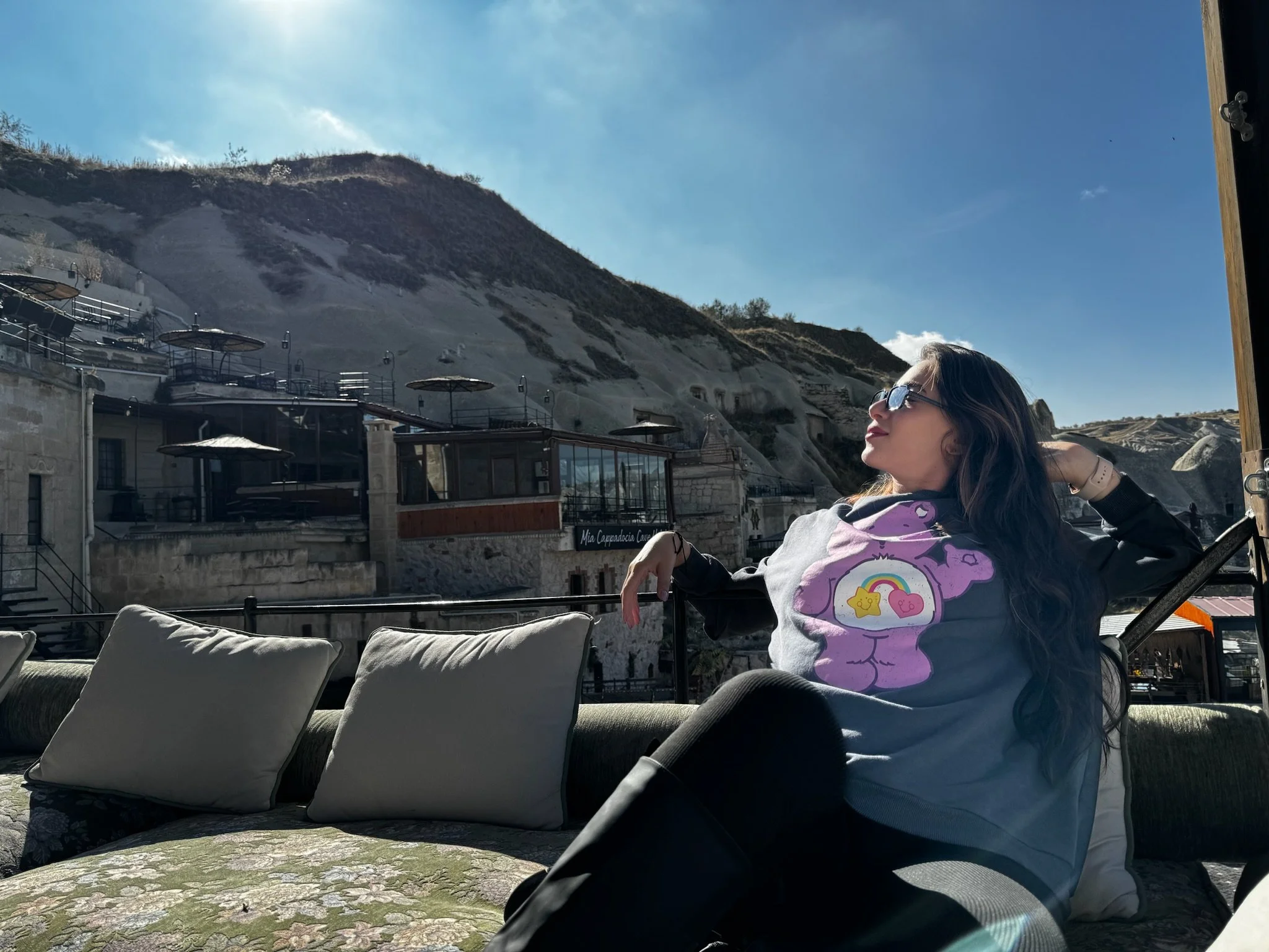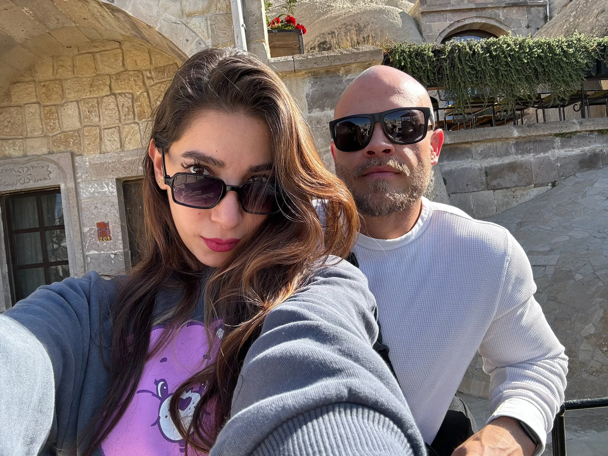 The couple stayed in a cave hotel made entirely of stone in the side of a mountain, which was a short walk from the restaurants and shops at the center of Göreme.